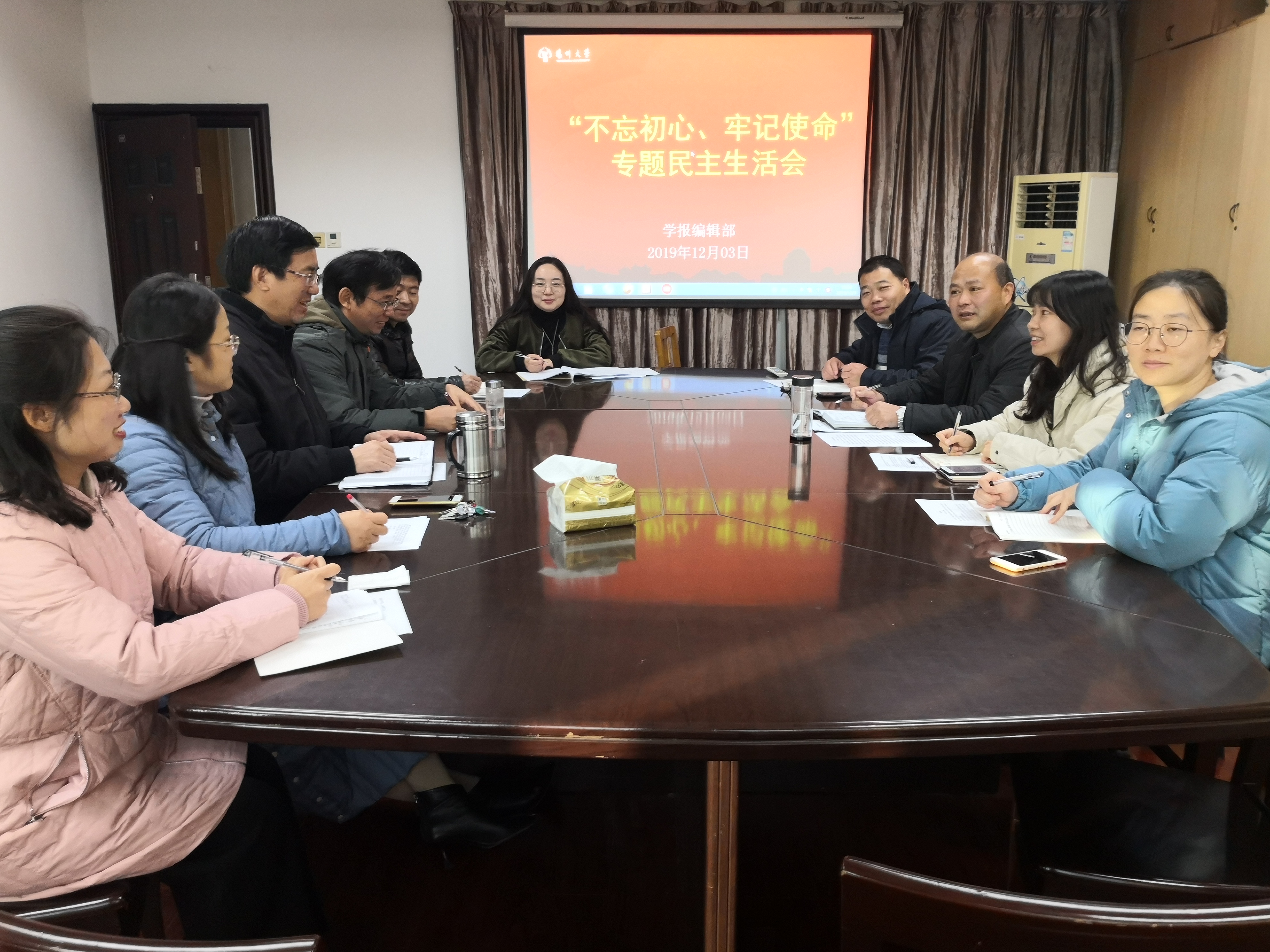 根据校党委统一部署,学报编辑部领导班子民主生活会于12月3日下午在会议室召开。学报编辑部领导班子以学习贯彻党的十九届四中全会精神为重点,围绕“不忘初心、牢记使命”主题教育要求,从政治建设、思想建设、作风建设、能力建设、廉政建设等方面进行了深入剖析,深入查找和解决突出问题。