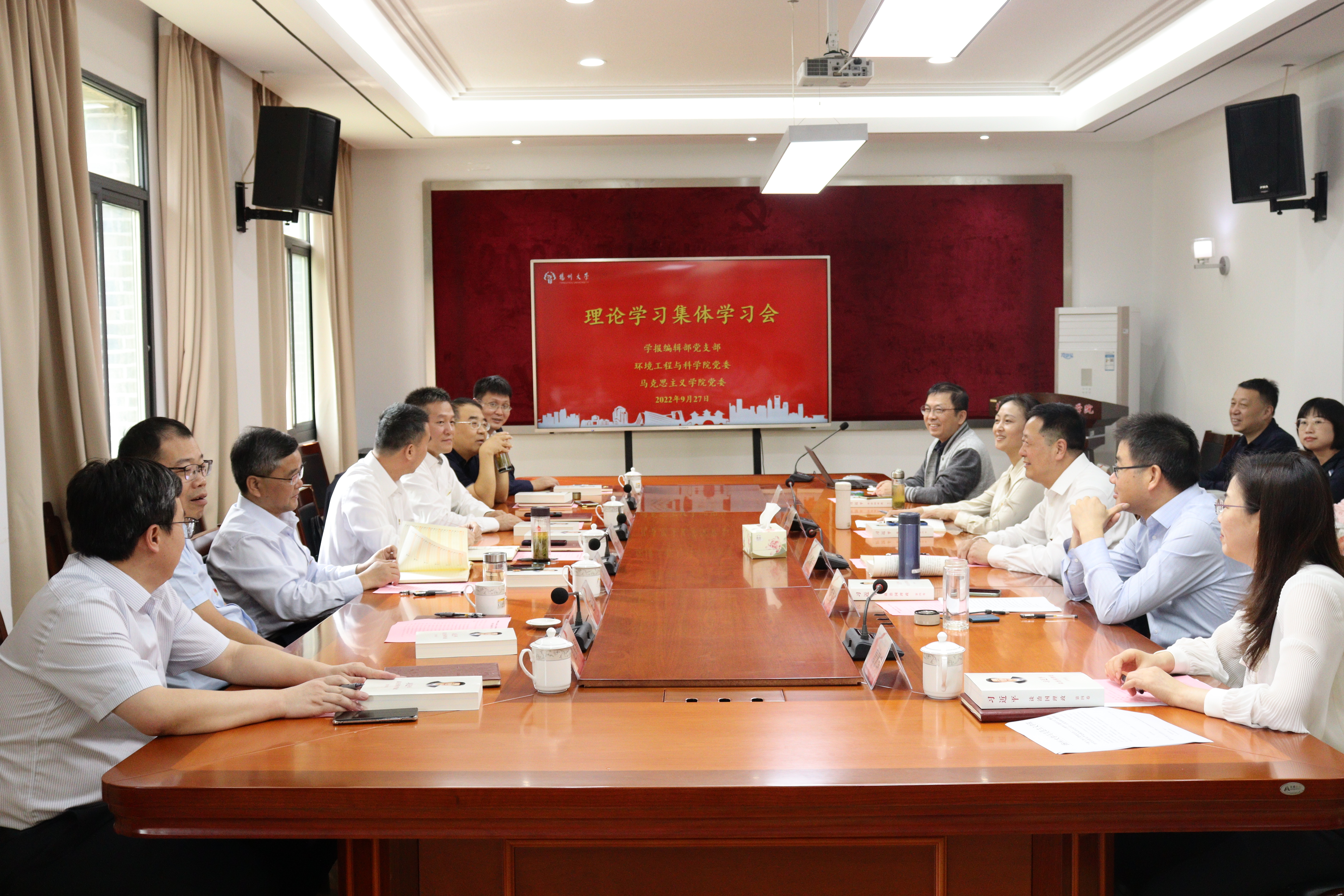 9月27日上午,在学校第四次党代会胜利召开之际,学报编辑部党支部、马克思主义学院党委、环境科学与工程学院党委以“坚苦自立擘画新蓝图 凝心聚力谱写新篇章”为主题开展集体理论学习活动,深入学习《习近平谈治国理政》第四卷以及习近平总书记在省部级主要领导干部迎接党的二十大专题研讨班上的重要讲话精神。